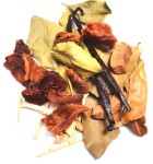 Add the cinnamon leaves, cloves, ginger and dried lychees.